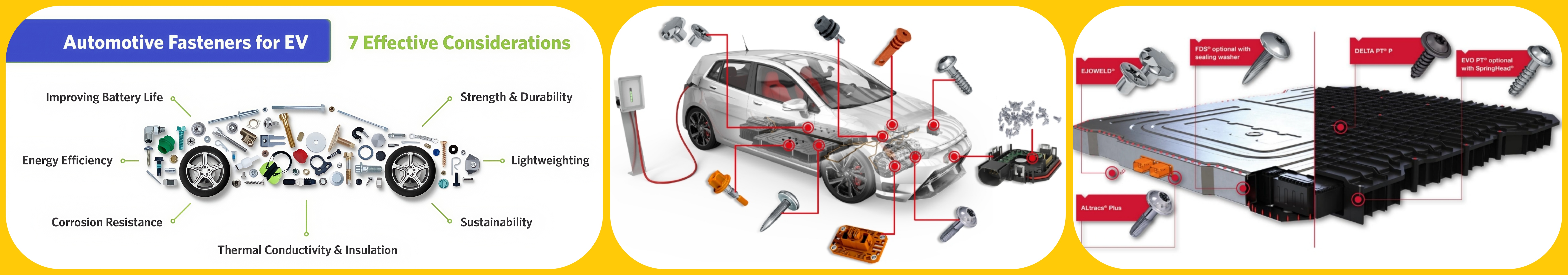 تثبیت واحد کنترل الکترونیکی (ECU): پیچ ها یا پیچ هایی را با مقاومت در برابر لرزش خوب انتخاب کنید و استفاده از محصولاتی را با واشر الاستیک یا موضوعات ضد جوشانده در نظر بگیرید. برای ECU با الزامات سازگاری الکترومغناطیسی ، اتصال دهنده های غیر رسانا یا کسانی که دارای خاصیت محافظ خاص هستند را انتخاب کنید.